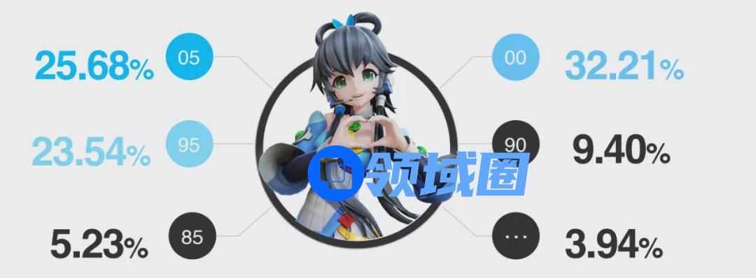 从受众画像来看,不难想象为何洛天依能有如此庞大的号召力,据官方统计,洛天依核心用户集中在24岁以下的年轻用户群体,且男女比例均衡。