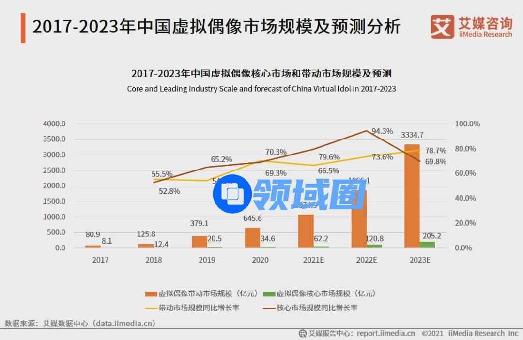 据近日艾媒咨询发布的中国虚拟偶像行业报告,2020年中国虚拟偶像核心产业规模为34.6亿元,同比增长70.3%,预计2021年将达到62.2亿元。