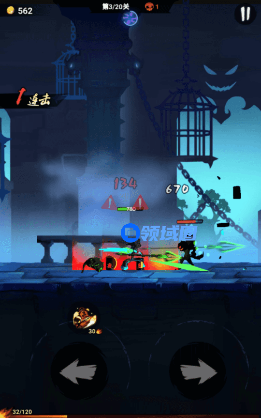 本代《火柴人归来》虽然取消了跳跃键,但并没有取消跳跃功能。当按下与敌人所在方位相反的方向键时,即可触发后跳功能,且多次按下可以打出最多三段连续的后跳。后跳不仅可以帮你闪避敌人的攻击,更是跳斩的前提动作。可以说,任何灵活的躲避与凌厉的攻势都离不开后跳的协助。