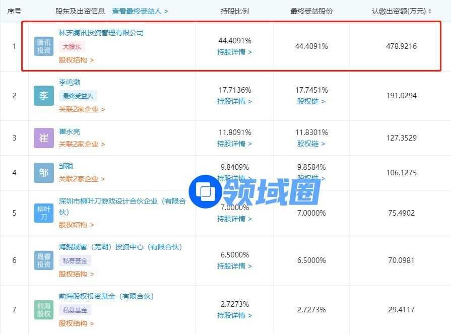 7月2日,据企查查显示,成都擎龙互娱科技有限公司发生工商变更,新增股东广西腾讯创业投资有限公司,同时公司注册资本由50万元人民币增加至55.56万元人民币。腾讯在此次投资中的持股比例为10%。
