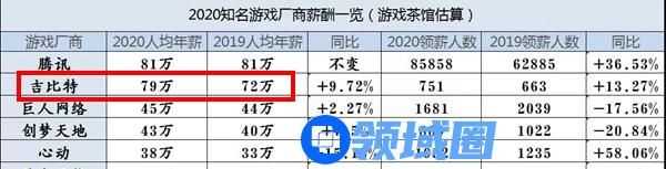 就游戏茶馆估算数据来看,吉比特平均年薪已从2018年的66万涨至2020年的79万,涨幅不小。