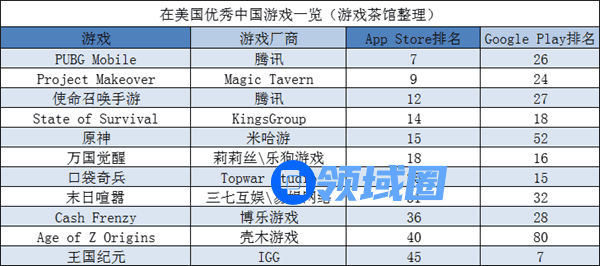 在本期榜单上,《PUBG Mobile》和《State of Survival》分别是出海美国和德国的游戏中收入排名第一的。