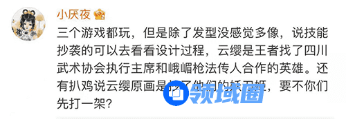 此前“绿茶游戏”扒鸡通过不正当的碰瓷行为,一蹭就蹭出了新热度。因此有人就开始有样学样,新赛季看到云缨火就开始碰瓷云缨,而且是照搬扒鸡的套路。拿着虚出新高度的叠图,非要说云缨撞脸其他游戏人物。没有任何真凭实据就激情开麦,还美其名曰“宣扬正义”、“保护版权”,我直接反手一个无语子!