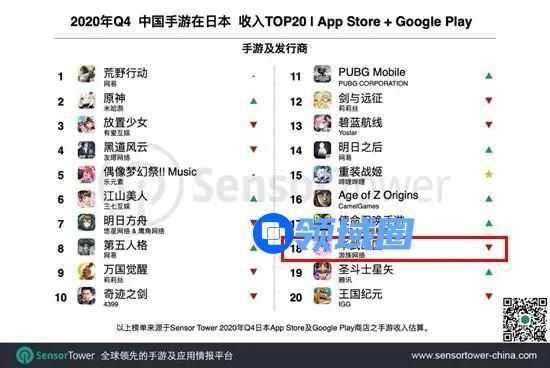 游戏茶馆很早之前就注意到游族在日本发行的《华武战国》这款游戏。在2019年上线以来,游戏长期是当地畅销榜Top 50的常客。据Sensor Tower去年Q4的榜单,《华武战国》依然跻身出海日本游戏收入榜Top 20。Sensor Tower告诉游戏茶馆,进入这份榜单的门槛约季流水1500万美元。