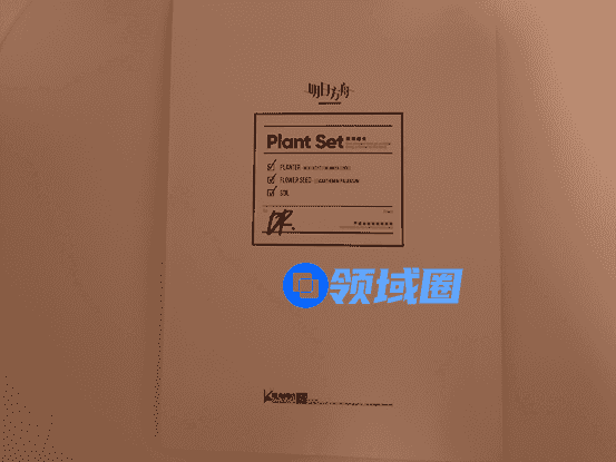 继续开箱,抽出中间的隔层泡黑色沫后,下面放着一个大信封与一本杂志大小的小册子。信封里面装着的是白晶菊种子的播种套装,白晶菊本身是非常容易养活的一类花卉 ,从播种到开花大概3个月时间,最佳的播种时间是5-8月,刚好是可以种植的最佳季节,可见鹰角考虑之周到。