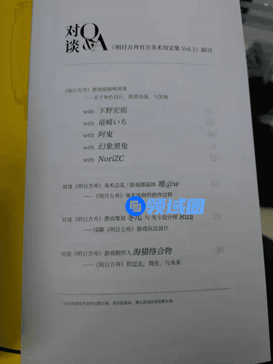 我怎么会忘记《泰拉杂谈记录》呢。在我看来,比起美术设定集,《泰拉杂谈记录》的咖位一点不低,因为里面的内容是明日方舟五位原画师与四位《明日方舟》项目组核心主创的访谈,而这四人分别是制作人海猫络合物,艺术总监唯,策划冬瓜以及关卡设计师Rua牛。