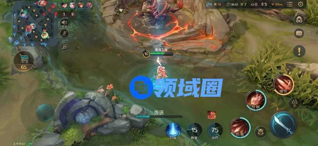 在游戏过程中,还有一个传送阵的设计十分新颖。传送阵是一个设计在上下河道之间可以相互传送的通道,该元素的增加丰富了游戏中的战术体系,增加了游戏路线的灵活性,为实现团队团战或者以多打少提供了有利技术支撑。当然,传送阵的使用也有冷却时间,玩家在使用时还需要提前计划好传送阵的使用目的和冷却时间的影响。