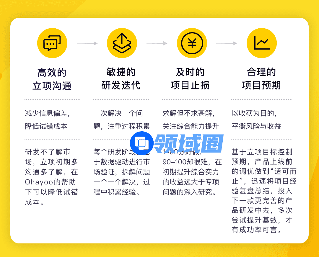 同时,我们也建议大家“及时止损”,尤其是在经过市场数据验证的情况时在数据层面上发现与立项预期有较大偏差时,不建议大家“死磕”到底,毕竟,成功率的前提,是有足够多可能成功的机会。