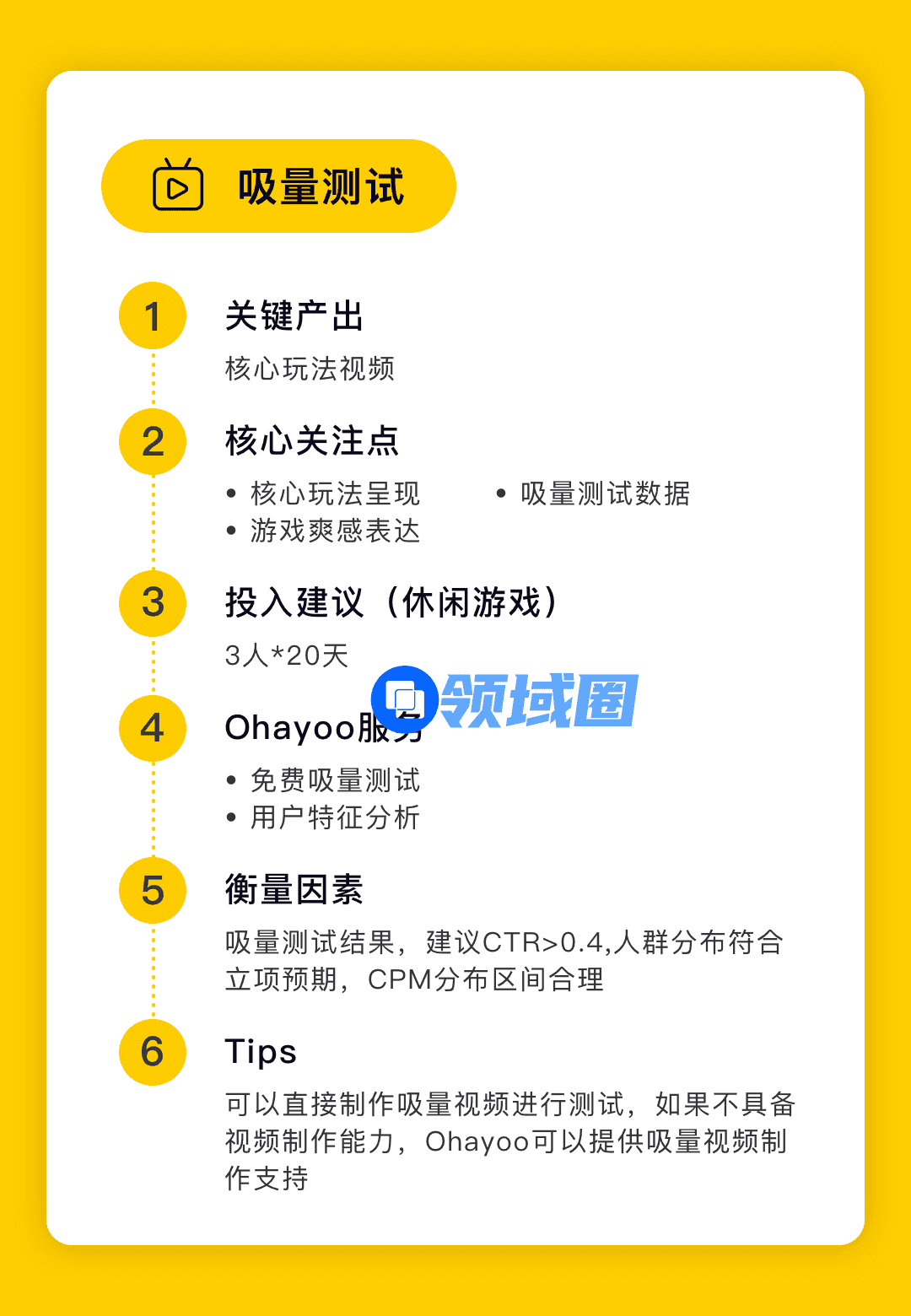 - 吸量测试的CTR高低代表游戏吸量度,不需要刻意通过修改视频展现形式提高吸量度,要相信用户的选择,不能掩耳盗铃;