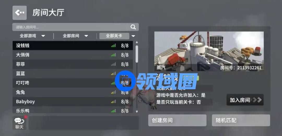 房间大厅,最多支持8人同时游戏