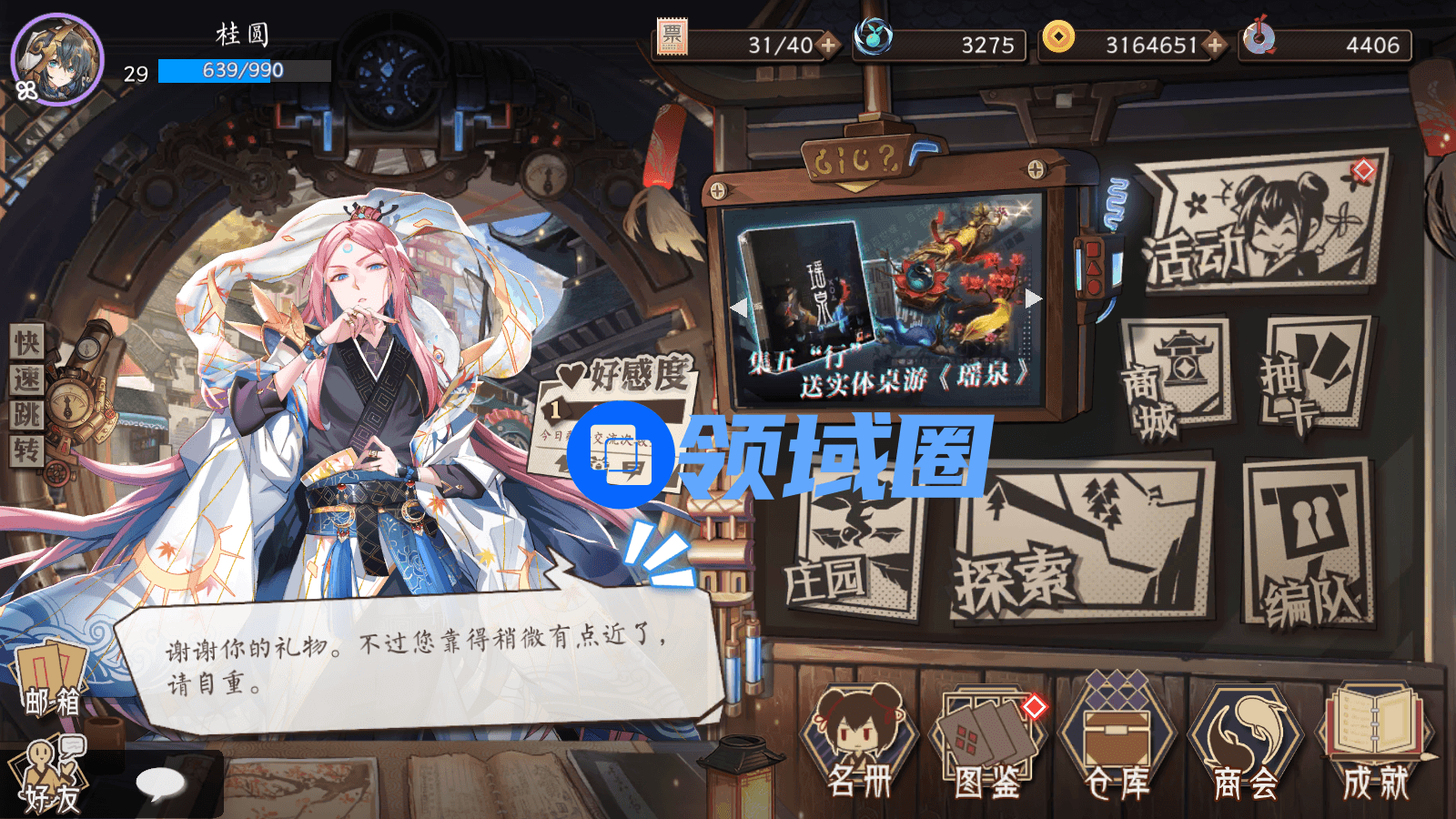 而在游戏的美术设计方面,徐锋说,他们一直认为,好的美术除了画面精良外,最重要的就是能够辅助支撑游戏的玩法和设定。由于《天上白玉京》的玩法是“轻”与“重”的结合,因而美术设计必须既能让玩家轻松享受经营,又能营造沉浸式的探索战斗氛围。“所以我们选择了可以令画面变得富有年代感的、偏暗的蒸汽朋克背景,还添加了手账,水墨古风,老街巷等元素作为点缀,并且在角色设计的时候,美术团队又对色彩进行了相对鲜艳明亮的处理,面部也保留了传统二次元风格,增添了画面中鲜活的生命力。”