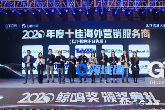 - 2020年度十佳海外营销服务商奖项获得者有:Taboola、Chartboost、BIGO Ads、猎豹移动、YinoLink易诺、点摩科技、Appstare、SparkX邑炎科技、LinkedIn、AppLovin。