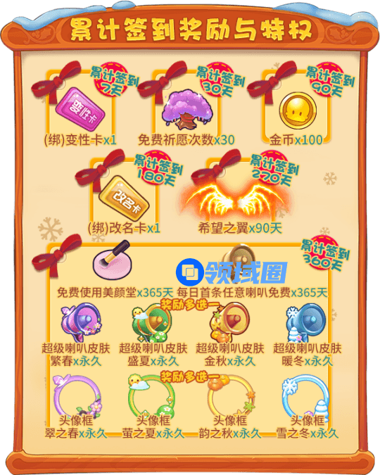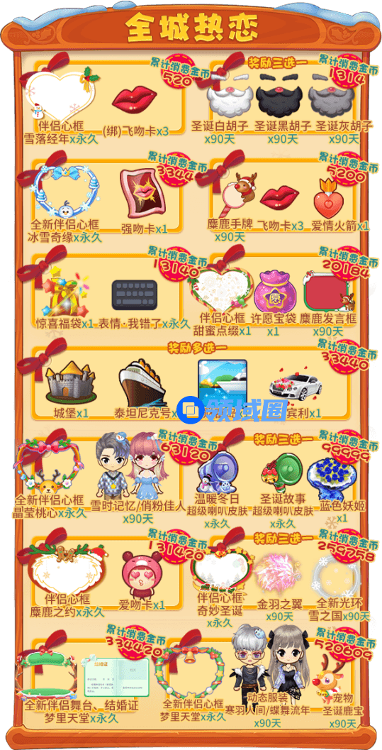 累计获得的圣诞币越多,可领取的奖励越丰厚!