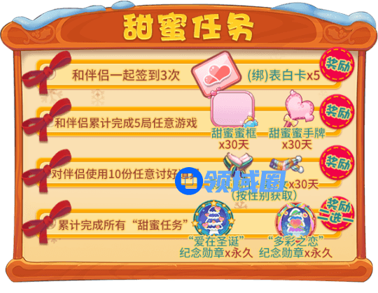三重礼:完成“甜蜜任务”,领取对应奖励!