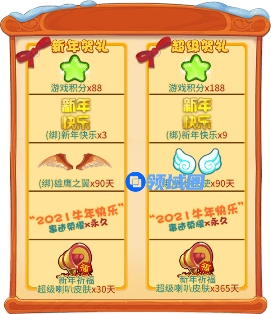 2. 新年礼包有效期为2021年1月1日00:00-1月3日23:59,过期后失效,请您尽快使用。