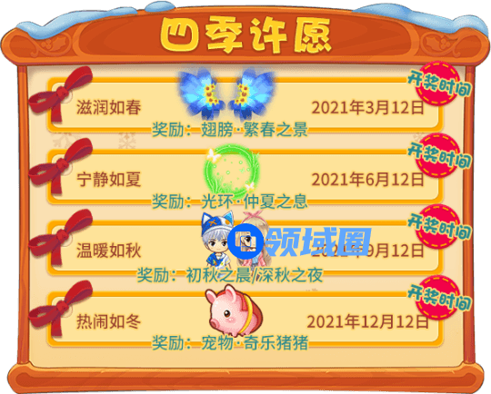 4. “四季许愿”奖励获奖玩家将由系统自动抽取,请玩家留意邮件通知;