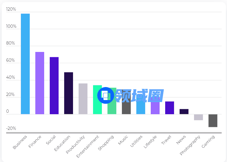 自有媒体较付费媒体,留存率最低是新闻、图片和游戏App。新闻类App自有媒体较付费媒体留存率仅仅高出不到10%,而图片和游戏类App的自有媒体与付费媒体留存率相较之下是负值,这意味着应用开发者需要广开门路,针对自己的产品不断做调研,并锁定留存最高的渠道。