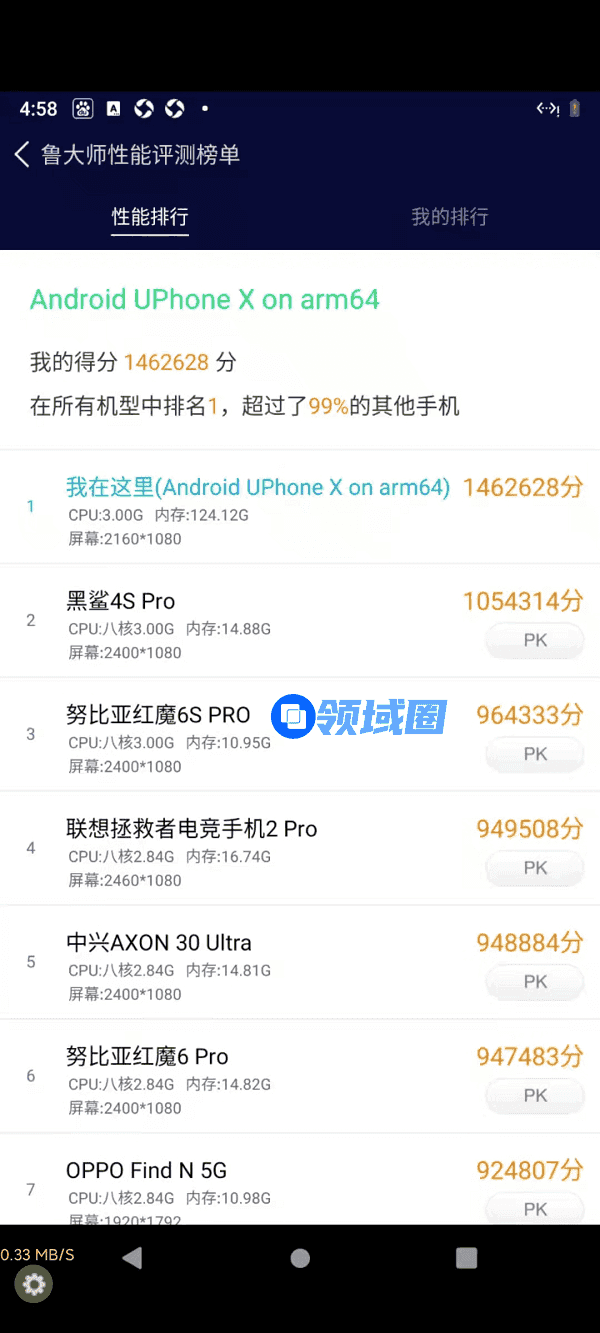 接下来,用手机版的鲁大师看一下跑分数据,截图如下: