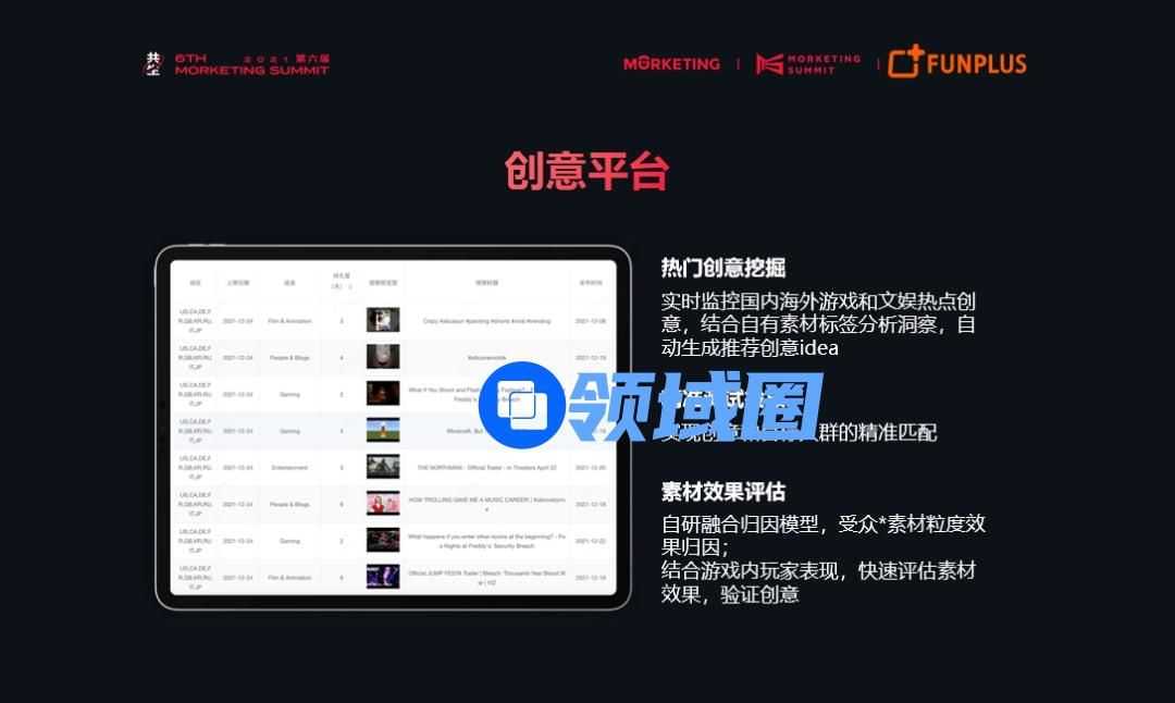 12月30日下午,由Morketing主办的第六届“Morketing Summit 2021·灵眸大赏”游戏场将以“玩家思维·体验时代”为主题在上海浦东嘉里大酒店召开。会上,FunPlus联席CTO伍涛发表了名为“内容为王、数据驱动,FunPlus出海营销之道”的主题演讲。