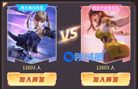 选择加入晴天佣兵阵营或者雨夜守望阵营,等待阵营累计人数到达一定数量,就能解锁对应奖励,玩家也可以邀请好友加入阵营,更快解锁奖励。