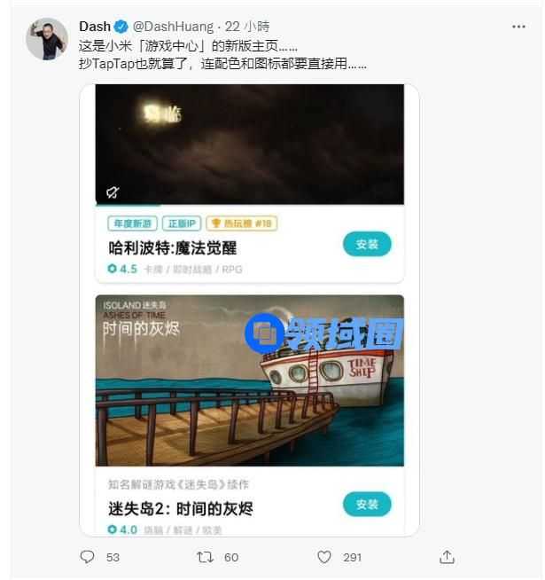 昨日,小米举办了今年最后一场大型发布会,在发布会上小米公开了小米游戏中心的新版设计,TapTap创始人、心动公司CEO黄一孟随后在推特上表示新版的小米游戏中心主页设计抄袭了TapTap,并且沿用了TapTap的配色与图标风格。