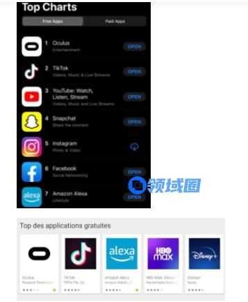 另一个更有说服力的证据是:从12月24日晚上开始,在美国区苹果App Store和Google Play商店,Oculus的智能手机应用都登顶了免费下载榜。这表明在圣诞节期间,Oculus受用户欢迎程度甚至超过了TikTok(抖音海外版)、Instagram、Snapchat和YouTube等热门社交网络应用。