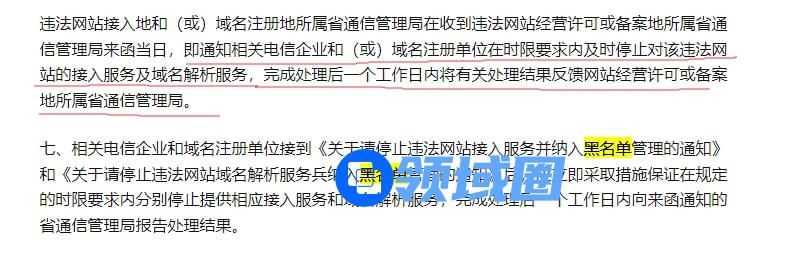 最后,列入黑名单的结果,只是让域名注册单位在规定时限内停止提供相应接入服务和域名解析服务,简单来说就是域名不能用了,关停了,但这并不会直接导致平台或者注册单位凉了。