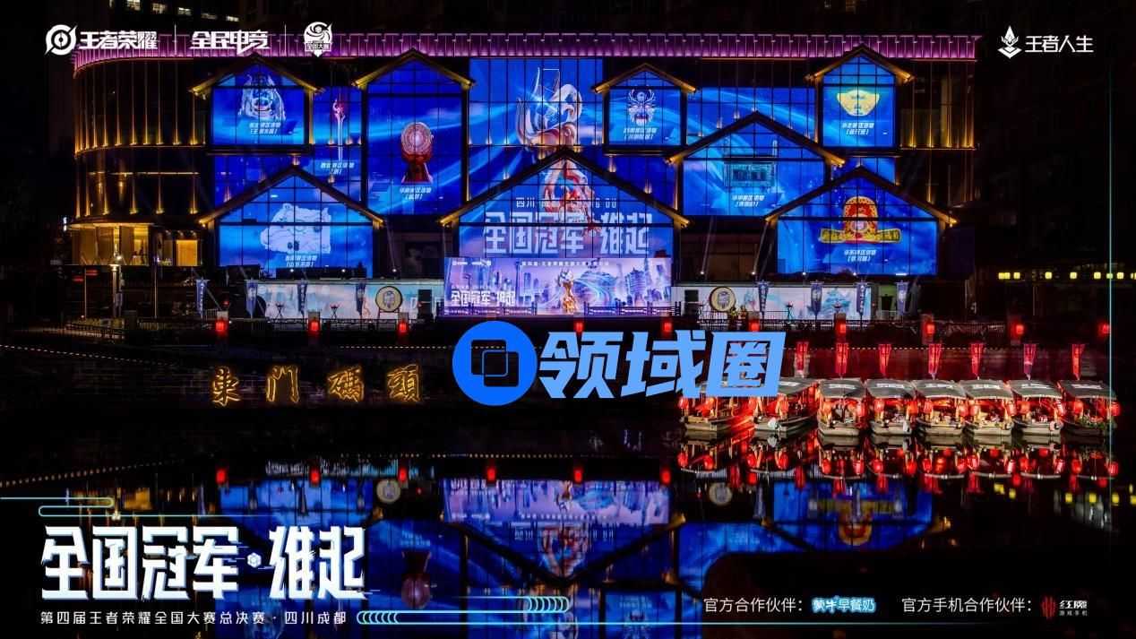 赛场外有成都地标性建筑双子塔灯光助威、战船点亮锦江等线下内容;场内有王者荣耀IP元素+成都地域文化元素在舞台上交相辉映,营造出具有城市特色的浓厚竞技氛围。比赛开始前,专业演员还以非遗川剧表演的形式,展现蜀国五虎上将的英姿,让人眼前一亮,屏幕前的用户可以由此感受到巴蜀文化的博大精深与独特魅力。通过电竞游戏与城市文化的结合,基于王者荣耀全国大赛的全民属性,本次大赛在蓉举办也为疫情时期的城市文旅模式创新带来了助力。