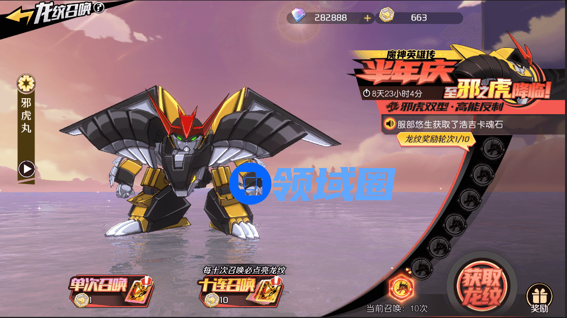 即日起,游戏内正式开启邪虎丸UP活动,玩家可以在龙纹召唤中进行魔神邪虎丸的招募,龙纹召唤为玩家获得顶级魔神的途径,每参与十次召唤必定点亮1个龙神秘纹,根据点亮秘纹的数量还能累计领取大量超值道具,更有邪虎丸器魂配套赠送,帮助小伙伴们加速养成强力魔神。