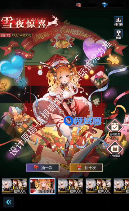 圣诞节将至,让我们看看谁才是狂欢节上最美的战姬少女,购买解锁三位战姬新皮肤还有大量角色成长道具和活动道具奖励相赠。