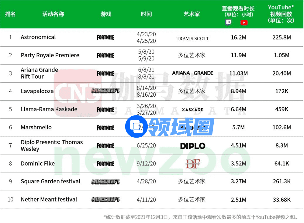 下图是十大游戏内音乐会(以实时收看时间统计)