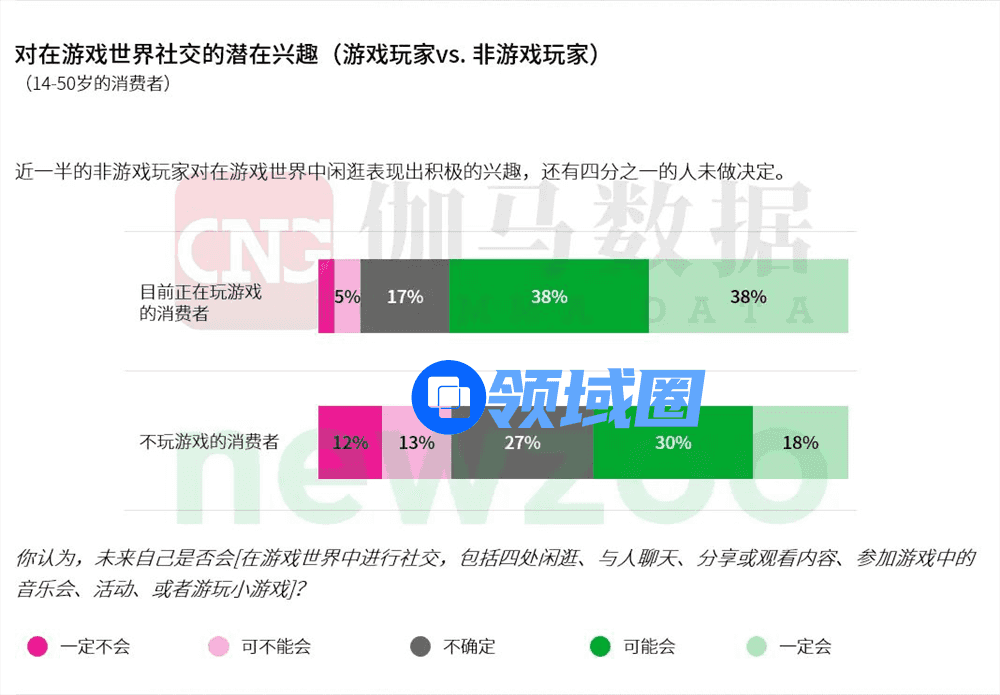 您认为,未来自己是否会[在游戏世界中进行社交,包括四处闲逛、与人聊天、分享或观看内容、参加游戏中的音乐会、活动、或者游玩小游戏]?
