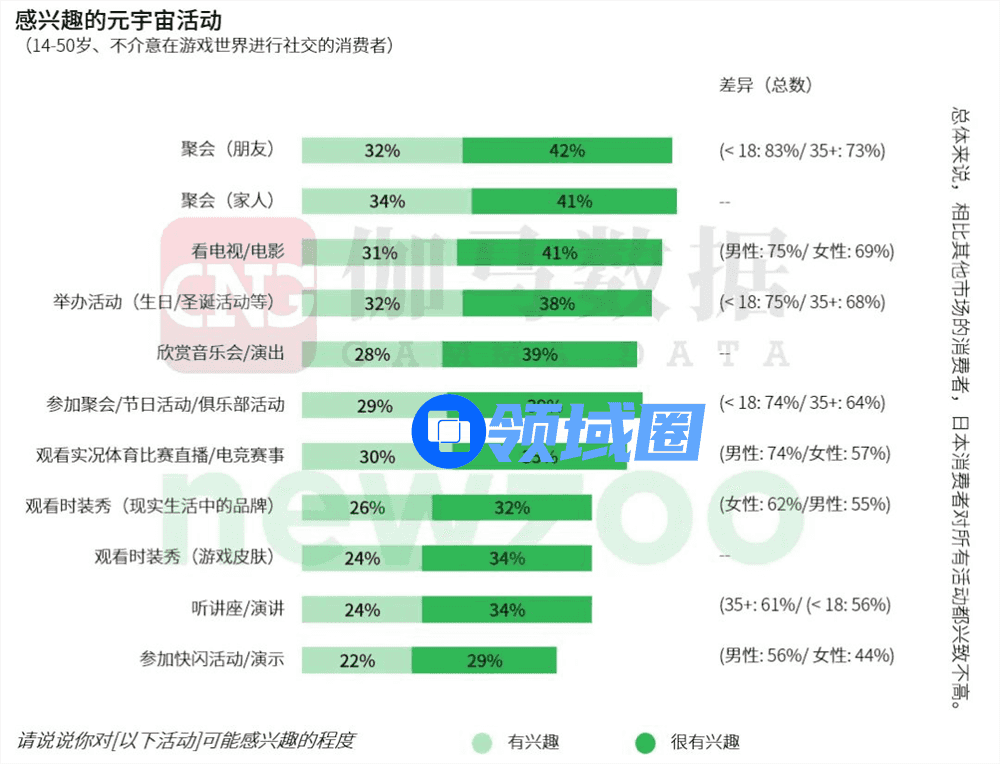 Newzoo和伽马数据的研究显示:游戏玩家潜在的兴趣较高,但类元宇宙的活动也吸引了相当多目前不玩游戏的消费者。