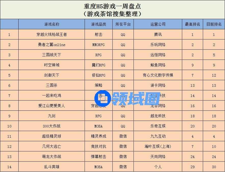 重度H5游戏:《穿越火线枪战王者》再登榜首,《一起来吃鸡》登榜