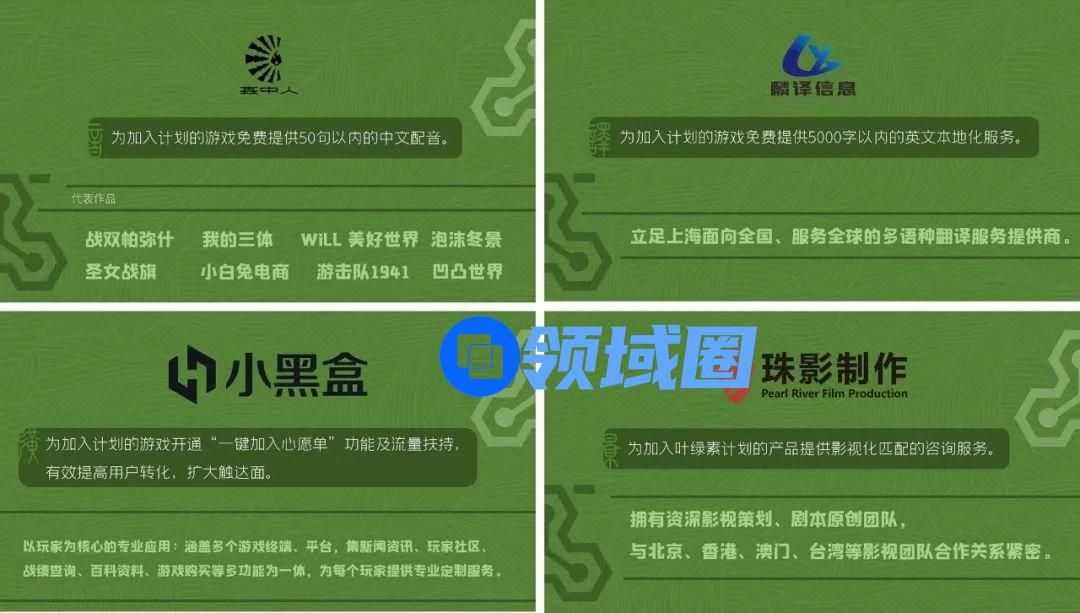 除Gamera Game自身之外,不少游戏行业的从业者也将为“叶绿素计划”助力,包括媒体、主播、社区平台以及翻译、配音团队等等。相信他们的加入将会为“叶绿素计划”的游戏开发者们带来更有力的帮助。