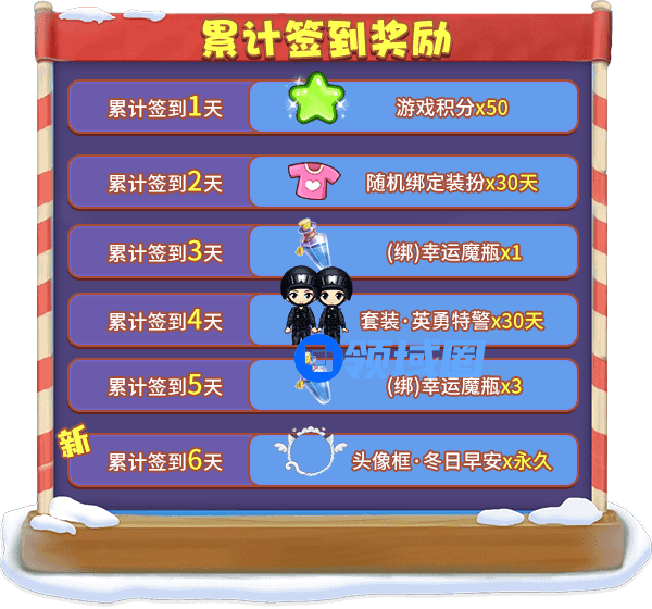 活动期间,每天完成签到即可领取一份随机绑定装扮,有效期均为15天!根据您累计登录的天数,还能领取额外奖励!