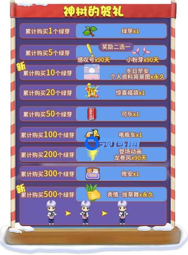 活动期间,根据您累计通过“祈愿神树”购买绿芽的数量,获得额外奖励!