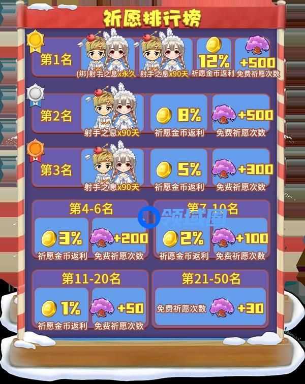 2、“免费祈愿”不计入“神树的贺礼”与“祈愿排行榜”统计。