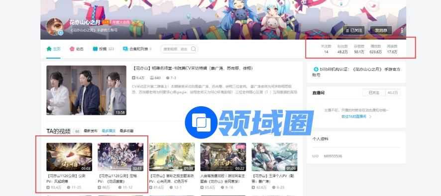 首先是B站。作为国内最大的Z世代社区,B站在用户属性上与《花亦山心之月》的国风、传统文化以及游戏本身的审美调性存在很高的重合度,"梗文化"的流行让B站游戏营销更加侧重内容,头部UP主是很好的催化剂。