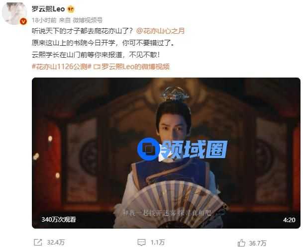 而面向泛用户《花亦山心之月》更是毫不手软,全方位调动明星、KOL、蓝V资源,保证游戏话题能在第一时间触达泛用户群体。与古风形象深入人心的罗云熙合作则是《花亦山心之月》找到的一个平衡点,罗云熙以玩家视角的“学长”身份通过Tvc展示游戏特色、引导用户入学的形式巧妙,不仅吸引了明星粉丝、泛用户的喜爱,也展现了官方严谨、尊重圈子文化的态度,实现内容平稳落地。
