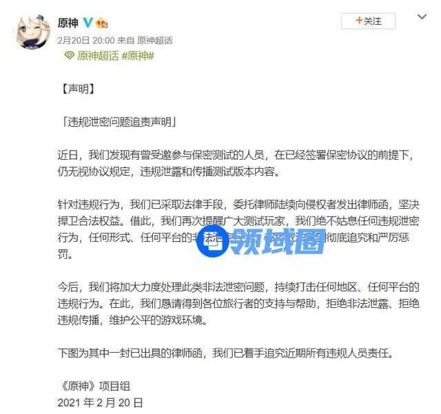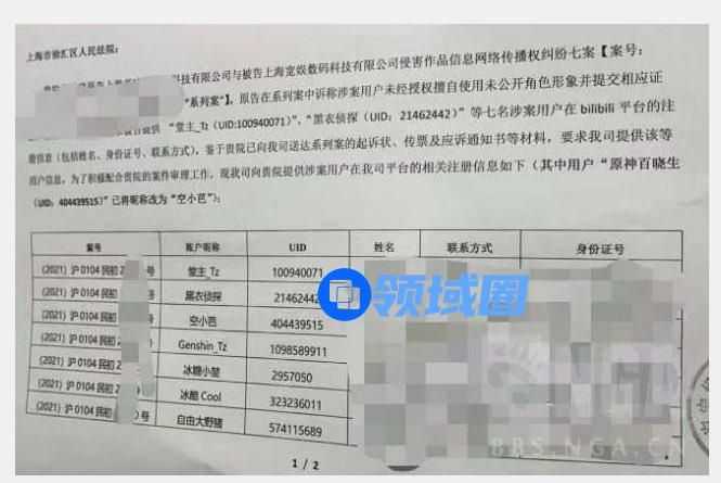 而《原神》的运营方米哈游在2月和7月时分别在微博上发布追责声明,声称将严查内鬼和泄密。9月时,为获得疑似侵权的UP主个人信息,米哈游前后7次起诉B站。