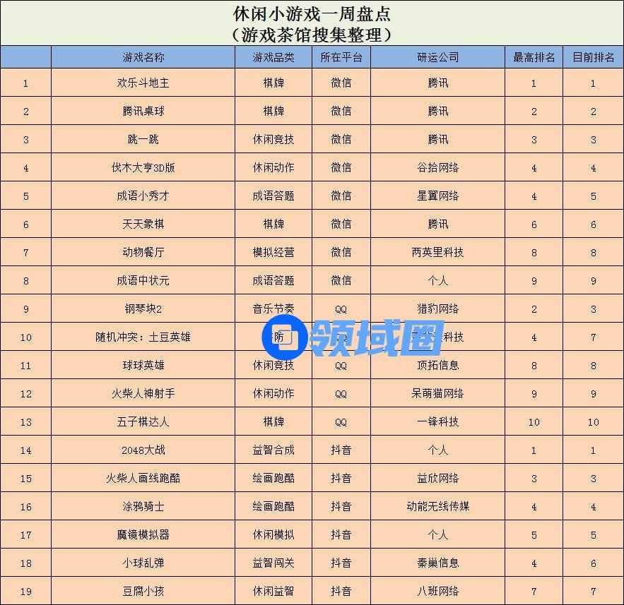 本周休闲游戏方面,仍由经典小游戏占据榜单头部大多数席位,尤其是在微信休闲小游戏榜单中,前列均为上线多年的老产品,目前,腾讯《欢乐斗地主》拿下榜首,同样来自腾讯的《腾讯桌球》和《跳一跳》则分别拿下了榜单第2和第3名。