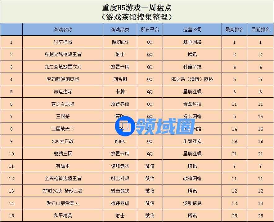 重度H5游戏:《时空神域》再登榜首,三国题材依然吃香
