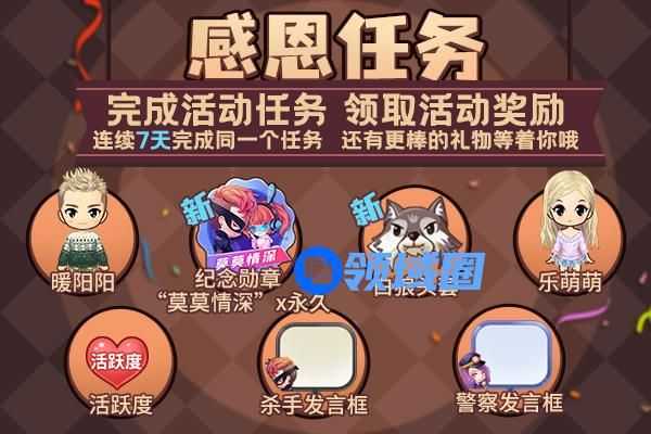 活动规则:感恩节特别任务完成进度将在每天00:00重置,请小伙伴们注意活动时间。