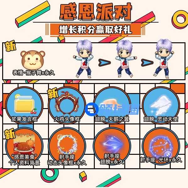 在活动结束后,各个队伍内累计通过接收道具增长游戏积分最多的前10名玩家,可领取“感恩排行榜”奖励!包含:射手座动态头像框、射手座翅膀、射手座光环。
