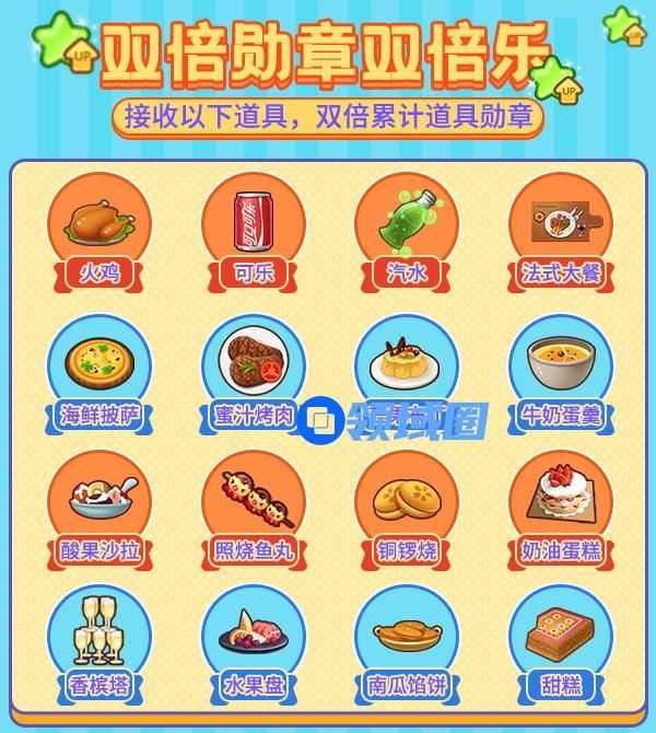 活动期间,接收以下非绑定的道具,将能够以双倍数量累计道具勋章!
