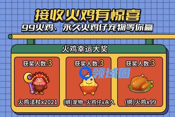 1、每位玩家最多可从“火鸡幸运大奖”中获得1次奖励;