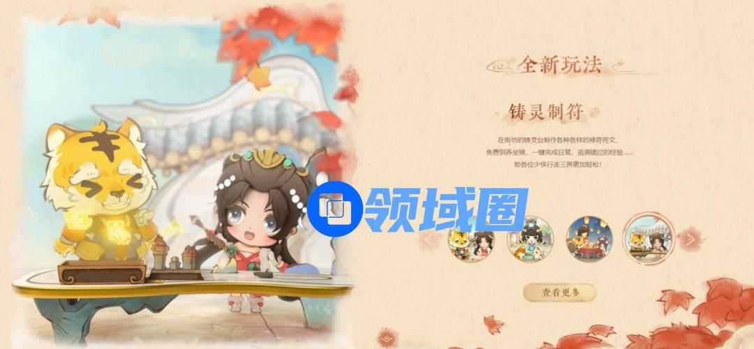 另外,在街坊广场中,铸灵台能够帮助玩家制作各种各样的神奇灵符,玩家只需要点击开始铭刻,即可开始制符游戏。通过对照临摹符贴,玩家画出来的符纸将会根据相似程度进行评定,依据评价的高低,获得不同数量的符文。
