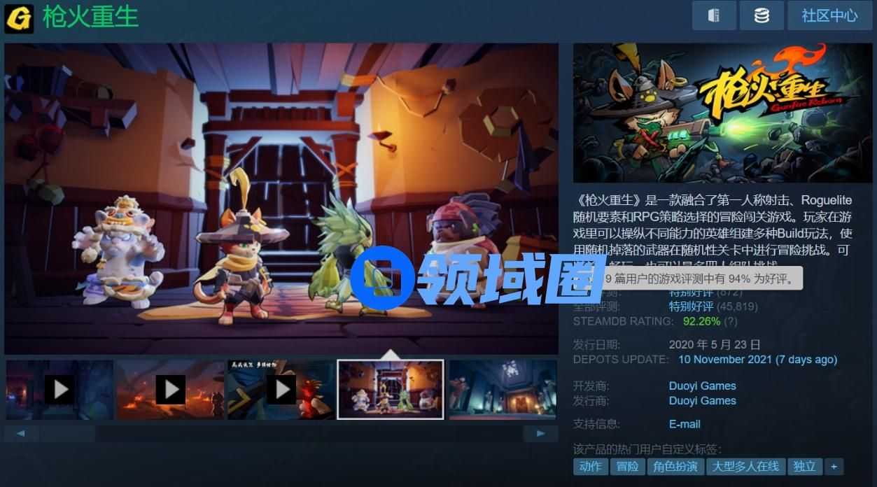 又一国产自研游戏在海外收获亮眼表现。由多益网络开发的国风冒险闯关FPS游戏《枪火重生》,近日宣布全球销量突破200万份,在Steam上更是收获超过四万的好评量、94%的好评率。