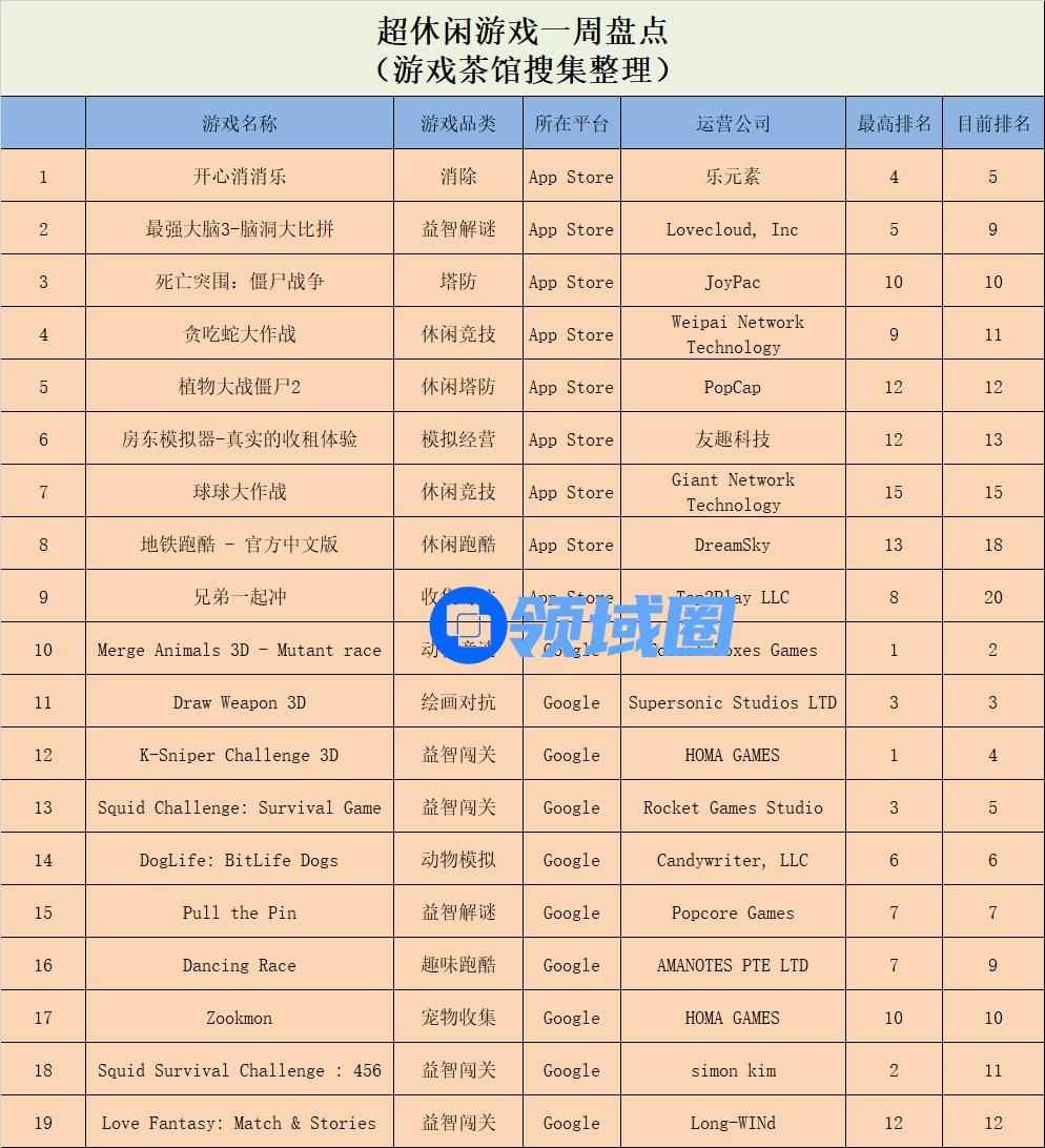 超休闲游戏:《开心消消乐》稳坐榜首,《死亡突围:僵尸战争》进入TOP10